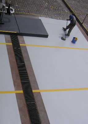 Reforço de borda -   Utiliza-se uma argamassa tixotrópica á base de resina epóxi, isenta de solvente, destinada á execução de reforço de bordas de juntas de piso (lábios poliméricos). Produto tricomponente formado por resina epóxi e agregados inertes especialmente graduados, apresentando excelente aderência a substratos de concreto e com ótima resistência. Selamento de juntas -  Utiliza-se selante tixotrópico á base de poliuretano monocomponente, de elevada aderência, alta viscosidade e que cura com a umidade do ar. O produto curado forma um elastômero flexível, durável e com elevadas resistências física e química.